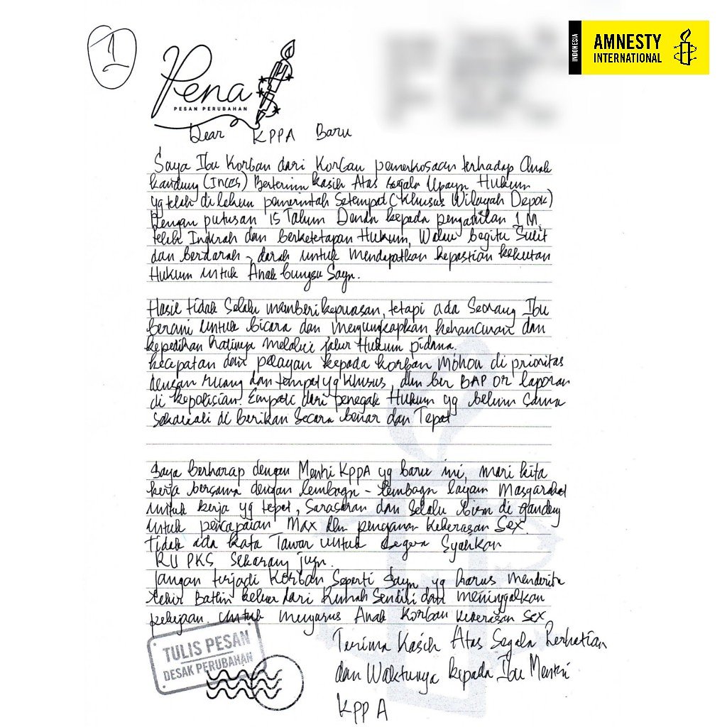 Ibu yang disebut pada paragraf awal juga berharap hal serupa. “Tidak ada kata tawar untuk segera mengesahkan RUU PKS sekarang juga.”