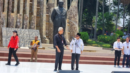 Pendaftaran pasangan bakal calon presiden (bacapres) Ganjar Pranowo dan bacawapres Mahfud Md ke KPU berangkat dari Tugu Proklamasi.