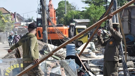 Satpol PP Surabaya Bongkar Bangunan Liar di Saluran Kebonagung