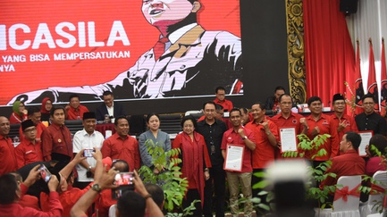 tirto.id - Sejumlah penari membawakan pagelaran tari bertajuk tajuk “Gelorakan Kebudayaan Nusantara, Bangun Pemudi Pemuda” saat perayaan HUT Presiden kelima RI Megawati Sukarnoputri di Jakarta, Rabu (23/1/2019). Perayaan HUT ke-72 Megawati diisi dengan pertunjukan budaya serta peluncuran buku The Brave Lady - Megawati dalam catatan Kabinet Gotong Royong. tirto.id/Andrey Gromico