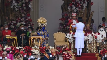 Presiden Joko Widodo (Jokowi) mengenakan pakaian adat Buton, Sulawesi Tenggara saat upacara HUT ke-77 Republik Indonesia, Rabu (17/8/2022).