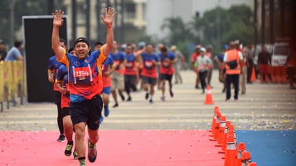 Lomba Lari Bangun Tjipta Golden Run 2019 yang digelar di Plaza Timur Senayan, Jakarta, Minggu (20/1/2019).