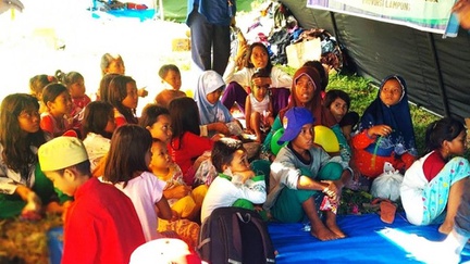 Dinsos Provinsi Lampung bersama Pramuka Peduli, LKS, Tagana, LDP, Perum Bulog dan lainnya menggelar lomba menggambar dan mewarnai bagi anak-anak terdampak tsunami Selat Sunda yang ada di pengungsian.