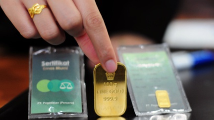 Produk emas Antam 24 karat di Pegadaian tercatat pada level harga jual Rp969.000 per gram, sementara emas UBS di level Rp925.000.