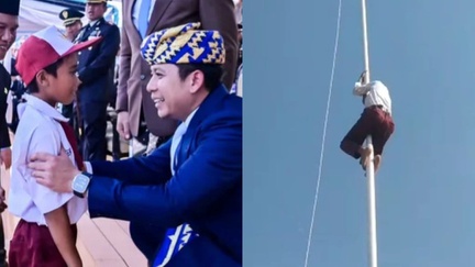 Aksi Raihan viral di media sosial setelah dirinya nekat memanjat tiang bendera saat tali pengerek putus pada Upacara HUT ke-80 RI.