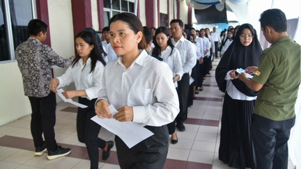 Para peserta ujian yang lokasinya tidak sesuai domisili hanya perlu menunjukkan KTP.