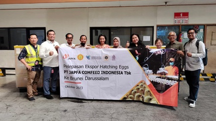 JAPFA mengekspor Hatching Egg perdana sebanyak 45 ribu butir ke Brunei dengan menargetkan total ekspor 130 ribu butir lebih di Bulan Oktober ini.