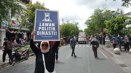 Masduki dalam orasinya mengatakan tak ada pilihan lagi bagi masyarakat kecuali mundur dari praktik politik dinasti.