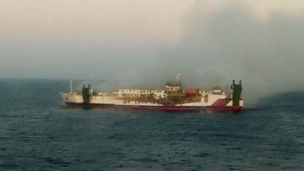 Kapal Motor (KM) Mutiara Timur 1 terbakar di Selat Bali saat berlayar dari Pelabuhan Banyuwangi menuju Pelabuhan Gili Mas Lembar, NTB, Rabu (16/11/2022).