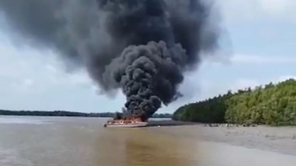 Perahu motor cepat SB Minsen jurusan Tarakan-Kabupaten Tana Tidung (KTT) terbakar di sekitar Tanjung Pas Payau, Tarakan, Senin (25/7/2022) pagi.