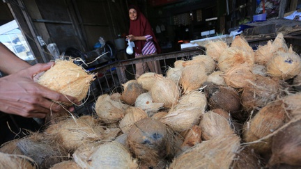Pedagang kelapa mengeluhkan banyaknya petani yang memutuskan untuk mengekspor kelapanya ketimbang menjual kepada para pedagang domestik.