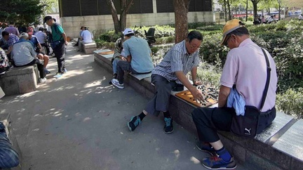 Setiap hari, manula yang cukup beruntung dan punya uang, menghabiskan waktunya bermain catur di taman-taman kota.