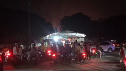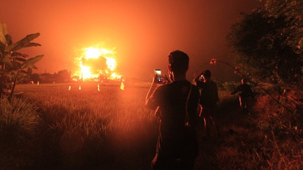 Tiga orang yang dilaporkan hilang tersebut diduga terpental ke sawah saat melewati lokasi Jalan Balongan pada Senin dini hari saat kebakaran terjadi.