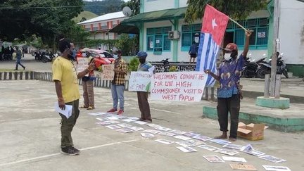 5 mahasiswa USTJ kibarkan bendera Bintang Kejora sebagai protes agar pemerintah Indonesia buka akses Komisi HAM PBB untuk meninjau Papua & Papua Barat.