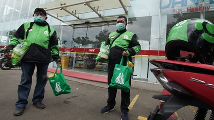 Gojek bersama Yayasan Anak Bangsa Bisa dan Alfamart memberikan lebih dari 200 ribu voucher belanja "Paket Sembako Keluarga Mitra".