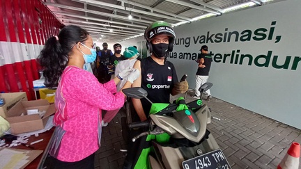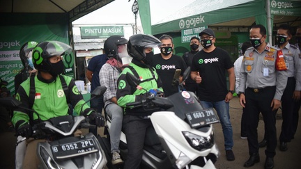 Vaksinasi Drive Thru Pengemudi Gojek di Kemayoran