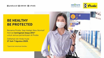 Lewat program Be Healthy Be Protected, Prodia memberikan keringanan biaya 20% untuk seluruh pemeriksaan di semua cabang Prodia se-Indonesia.