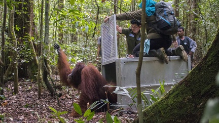 Setelah diselamatkan Tim Evakuasi YIARI Ketapang dari kebakaran hutan pada Desember 2015, Orang Utan bernama Jambu, akhirnya dilepasliarkan di hutan lindung Gunung Tarak.