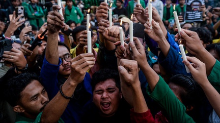 Ratusan massa aksi dari elemen mahasiswa mengepung kantor DPRD Jawa Barat di Jalan Diponegoro, Kota Bandung, Jumat (21/02/2025).