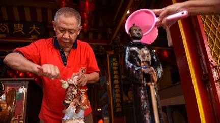 Membersihkan Patung Dewa-Dewi Jelang Imlek