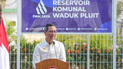Pj Gubernur DKI Jakarta Heru Budi Hartono meresmikan operasional Reservoir Komunal Waduk Pluit di Rusun Waduk Pluit Muara, Penjaringan, Jakarta Utara.