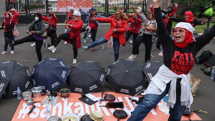 Serbet raksasa sebagai bentuk protes kepada DPR RI lantaran Rancangan Undang-Undang Perlindungan Pekerja Rumah Tangga (RUU PPRT) tidak kunjung disahkan.