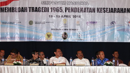 Ada dua simposium yang merespons Tragedi 1965 di paruh pertama tahun 2016 ini, yakni simposium di Hotel Aryaduta pada 18-19 April dan simposium di Balai Kartini, 1-2 Juni. Simposium Aryaduta secara eksplisit mendorong terjadinya pengungkapan kebenaran dan rekonsiliasi sebagai penyelesaian nonyudisial atas tragedi itu. Di sisi lain, Simposium Balai Kartini memandang rekonsiliasi sudah terjadi secara alamiah dan meminta pemerintah tidak membuka-buka lagi masa lalu.