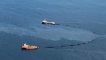 Pertamina mengerahkan 13 kapal untuk melakukan pembersihan lapisan tipis minyak di permukaan laut tersebut.