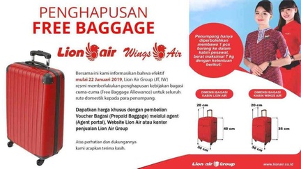 Tarif baru kelebihan bagasi Lion Air Group yang mulai diberlakukan pada 1 September 2019.