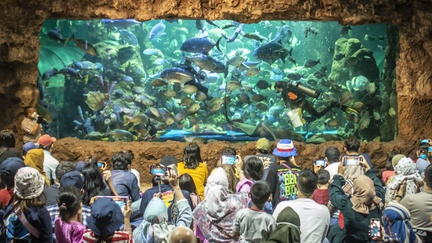 Hari kedua setelah Lebaran, Selasa (25/4/2023), 25 ribu pengunjung yang memasuki kawasan Ancol Taman Impian, Jakarta.